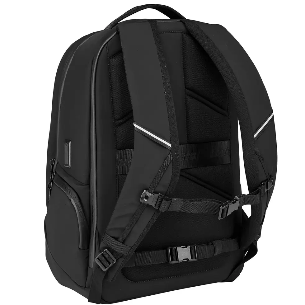 L’ufficio in uno zaino: questo è il Mate S. Zaino mono scomparto con fondo rinforzato, una capacità di 20 litri e tasche per PC fino a 15,6”, tablet, borraccia, smartphone, documenti e occhiali. Dotato anche di porta USB per la ricarica dei device è il giusto mix tra compattezza e spazio, funzionalità e protezione, efficienza e praticità per chi è sempre in movimento. Alloggiabile sul trolley grazie all’apposito nastro.